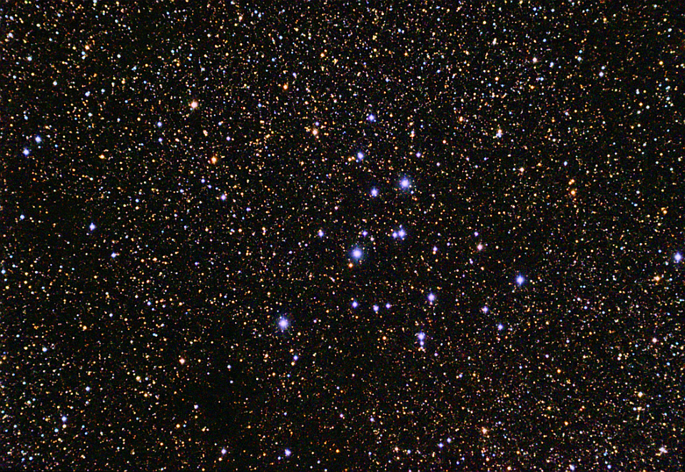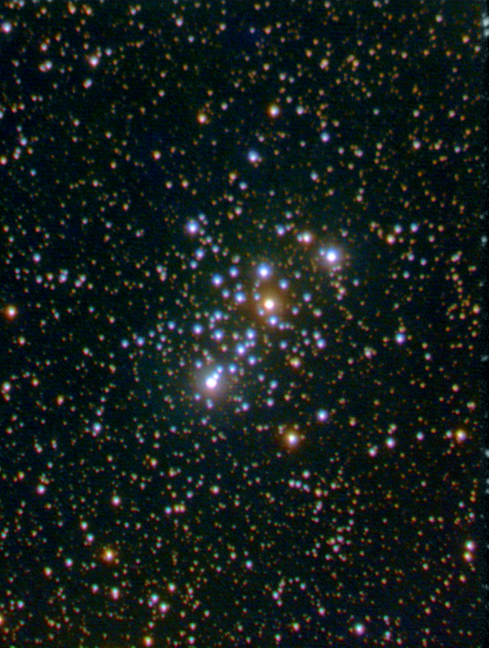 16M38 An open cluster in Auriga. Taken at home on 11/30/06. 10" RCX400, DSI-Pro camera, unguided. Total time 122 minutes (RGB=42:40:40), 10 seconds/frame.