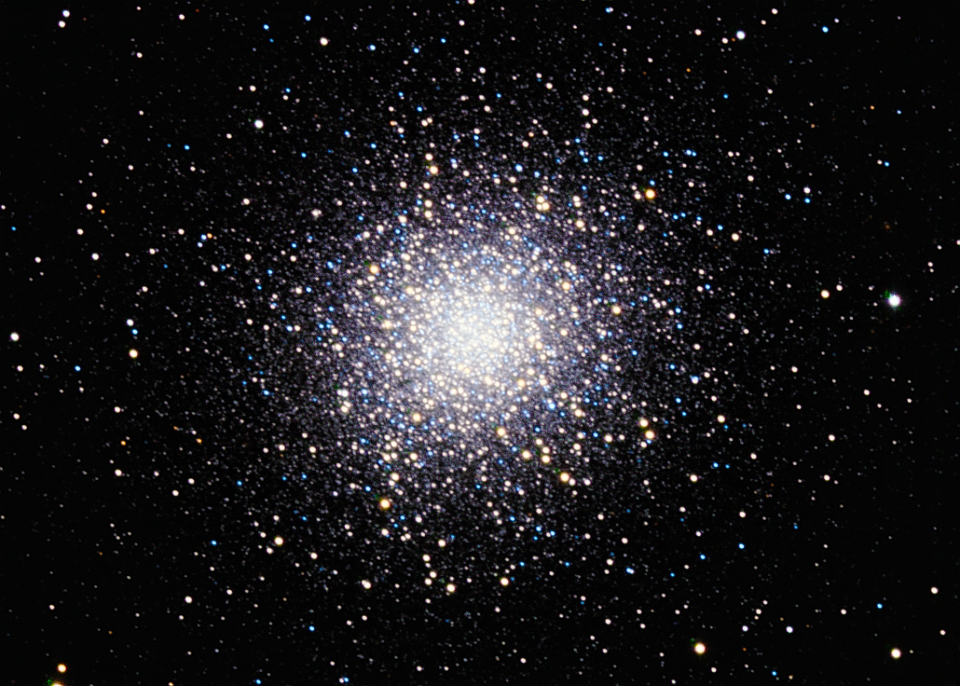 6M13 Globular Cluster in Hercules. Taken at home on 09/06/15 - 09/17/15. Planewave CDK 12.5", SBIG ST-10XME camera. 300 seconds/image, total time 9h 50m (LRGB = 375:75;60:80 minutes).