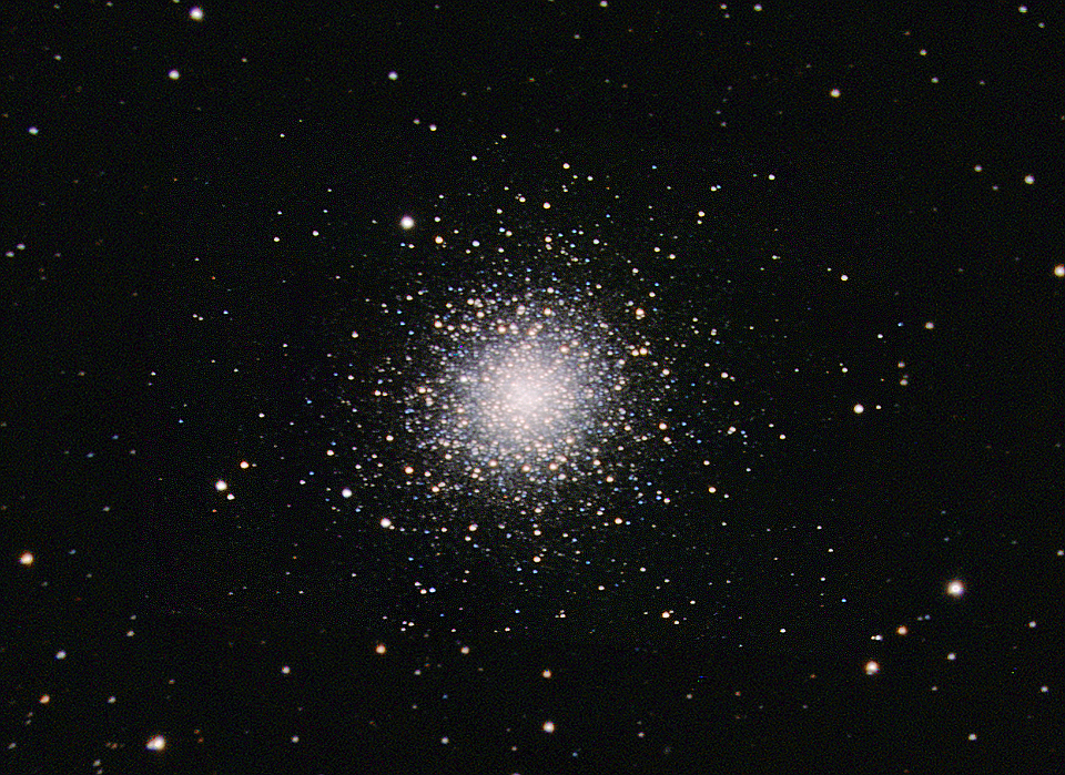 33M92 Globular cluster in constellation Hercules. Taken at home on 06/25/07 and 06/26/07. Meade RCX400 10" scope, DSI-Pro II camera. 10-30 seconds/image, total time 133 minutes (LRGB=62:20:21:30).
