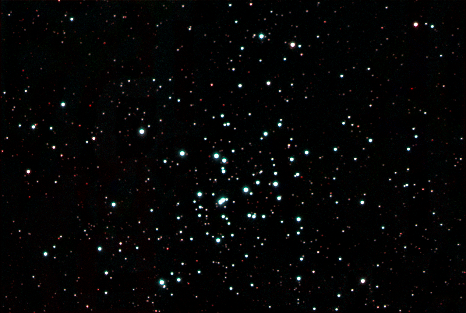 26M67 Open Cluster in Cancer. Taken at home on 03/15/07. Meade RCX400 10" scope, DSI-Pro II camera, f/3.3 focal reducer. 10 seconds/frame, total time 122 minutes (RGB=60:61:61).
