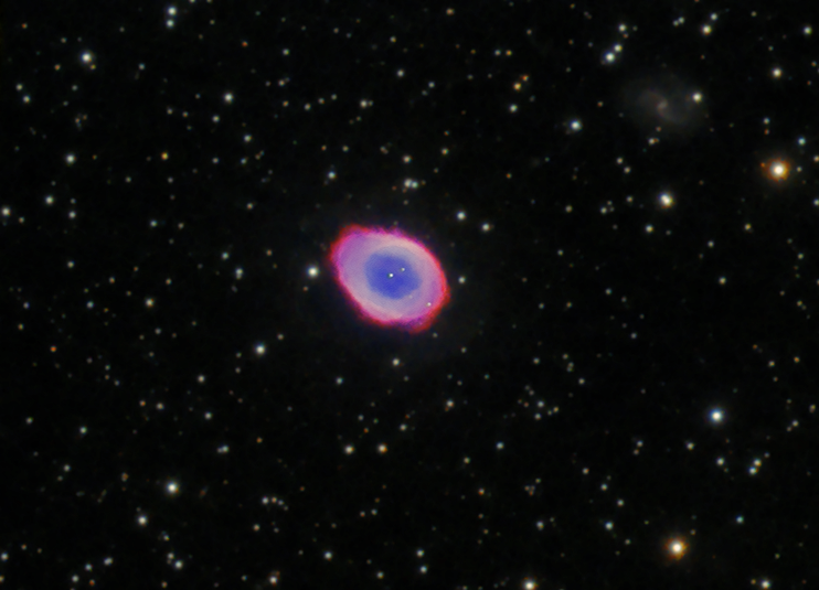 23M57 Ring Nebula. Taken at home on 08/19/07. RCX400 10" scope, DSI-Pro II camera. 60 seconds/image, total time 122 minutes (LRGB=60:17:15:30).