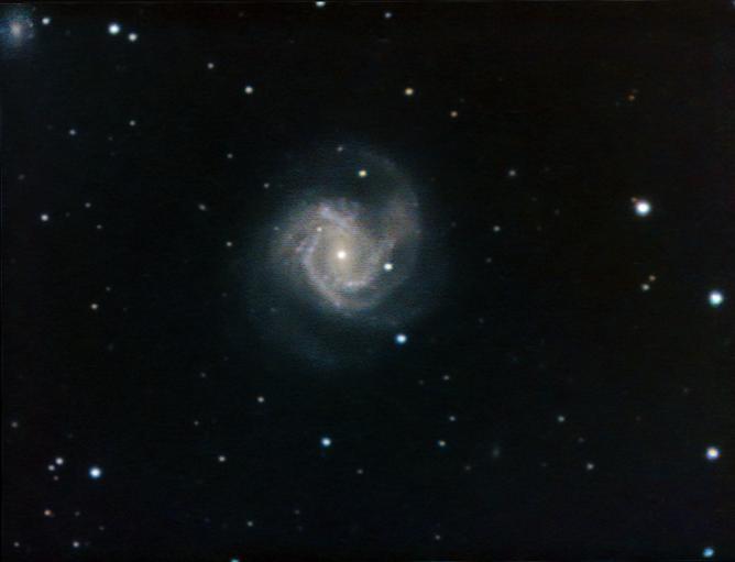 24M61 Swelling Spiral Galaxy in Virgo. Taken at home on 04/27/06. Meade RCX400 10" scope, DSI-Pro camera, f/3.3 focal reducer. 20 seconds/image, total time 150 minutes (LRGB = 180:60:90:120).