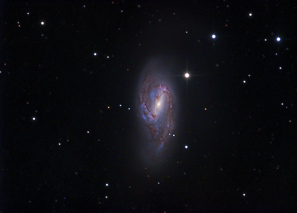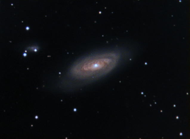 25M66 Spiral Galaxy in Leo, part of the Leo Triplet. Taken at home on 02/04/16 - 02/08/16. Planewave CDK 12.5", SBIG ST-10XME camera. 300 seconds/image, total time 17h 20m (LRGB = 650:135:120:135 minutes).