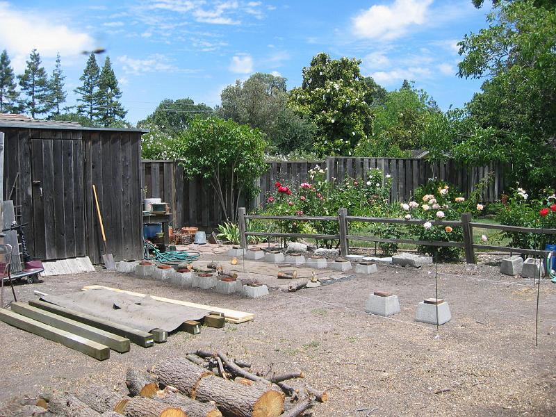 | Stump is gone | The oak tree stump is gone (but not forgotten), and the cement piers for the foundation are in place. I used the strings to locate the center of the observatory and to get the piers aligned and squared up.s | |