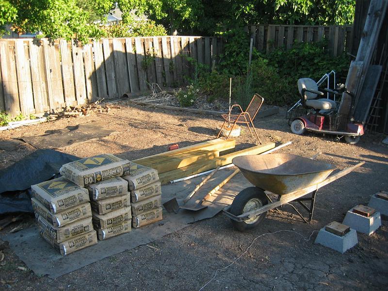 My calculations showed that 11 sacks of ready-mix should be enough to fill the hole; but I bought 13 to be sure.