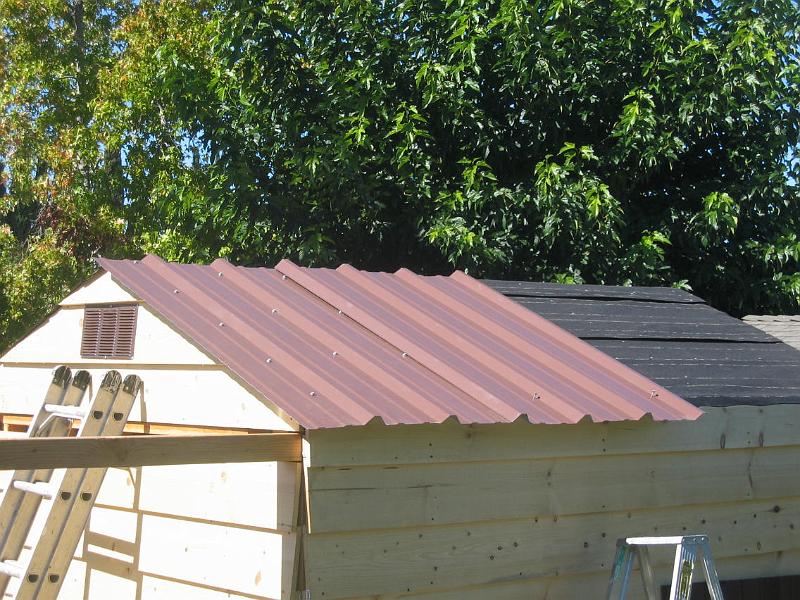 | Roofing | I tacked the roof panels in place while I screwed them down. The only way to do the job was to install one panel, then crawl out on that panel to install the next one. This was the most dangerous part of the project. | |
