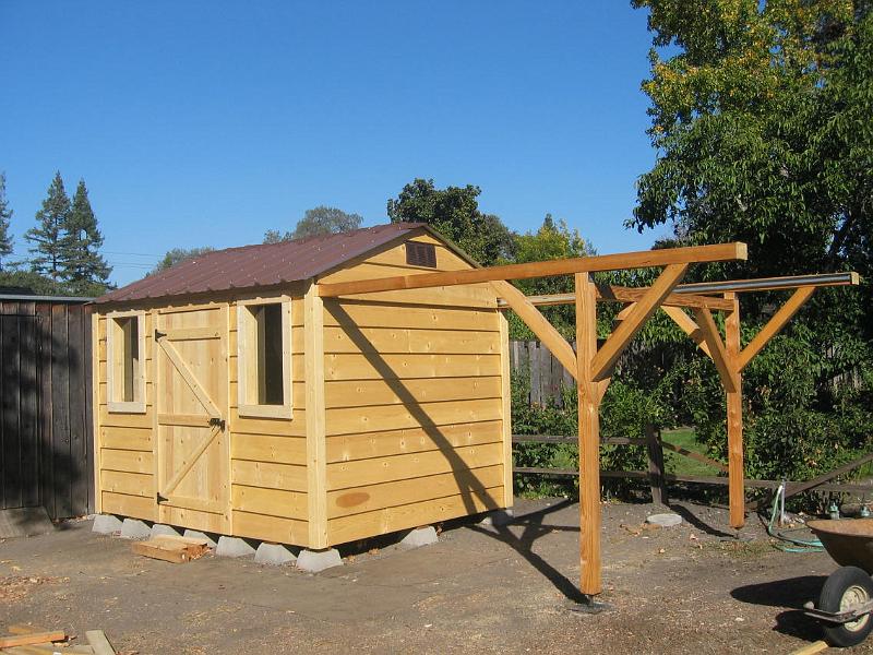 | Nearly done! | The observatory is nearly done now (10/27/2006). The rest is fluff. The SkyShed plans call for flower boxes and shutters for the windows; but I chose to go with the simpler look. Besides, I didn't want to have to water the flowers! | |