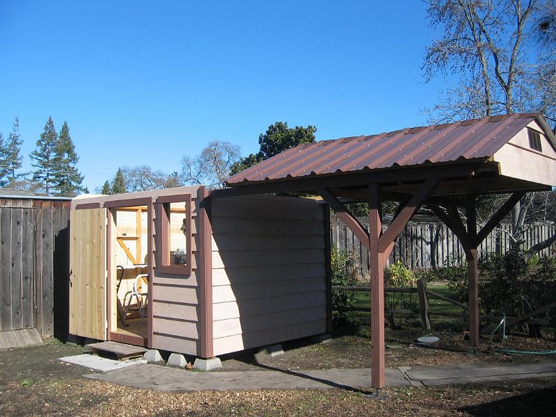 | Roof rolled off | This shows the roof in its rolled off position. I was surprised to find that it rolled off completely clear of the building. As a result, it doesn't block the sky as much as I was expecting. This photo was taken on 12/3/2006; so the whole project took about 7 months. | |